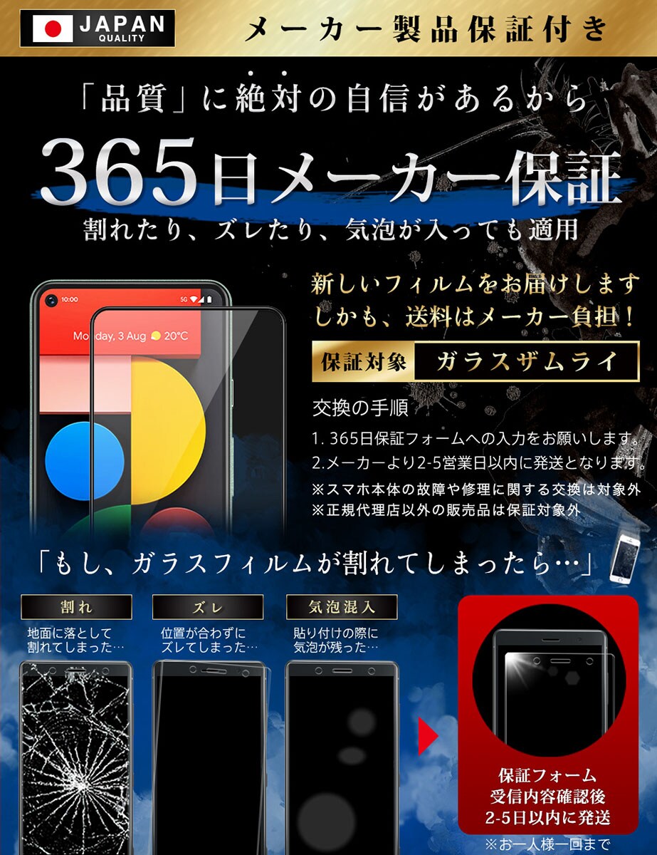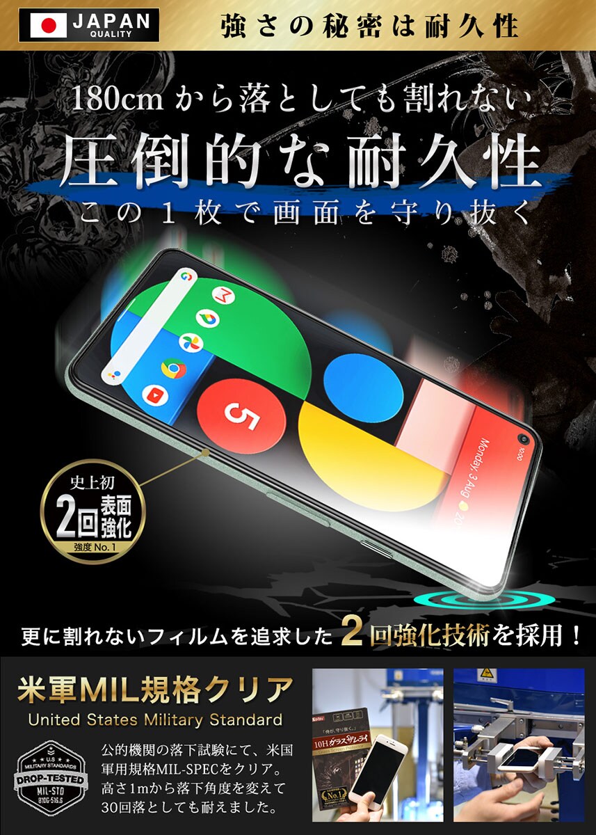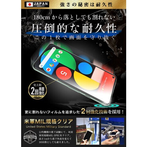 商品名:Google Pixel 5 ガラスフィルム 保護フィルム ブルーライトカット 10H ガラス ガラスザムライ らくらくクリップ付き フィルム