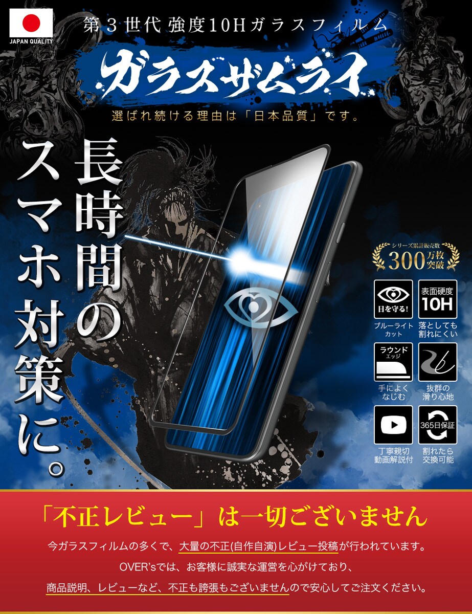 移動中の電車で、寝る前の暗闇で、ゲームのやりすぎで、ブルーライトを浴び続けると「目の痛み」「肩こり」「頭痛」を引き起こし、体全体に悪影響を与えます。 今日からできる "ブルーライト対策" を、ガラスザムライで。