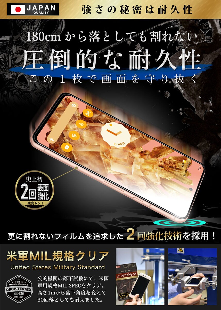 【 10H ガラスフィルム ~ 高さ1mから落ちても割れない 】