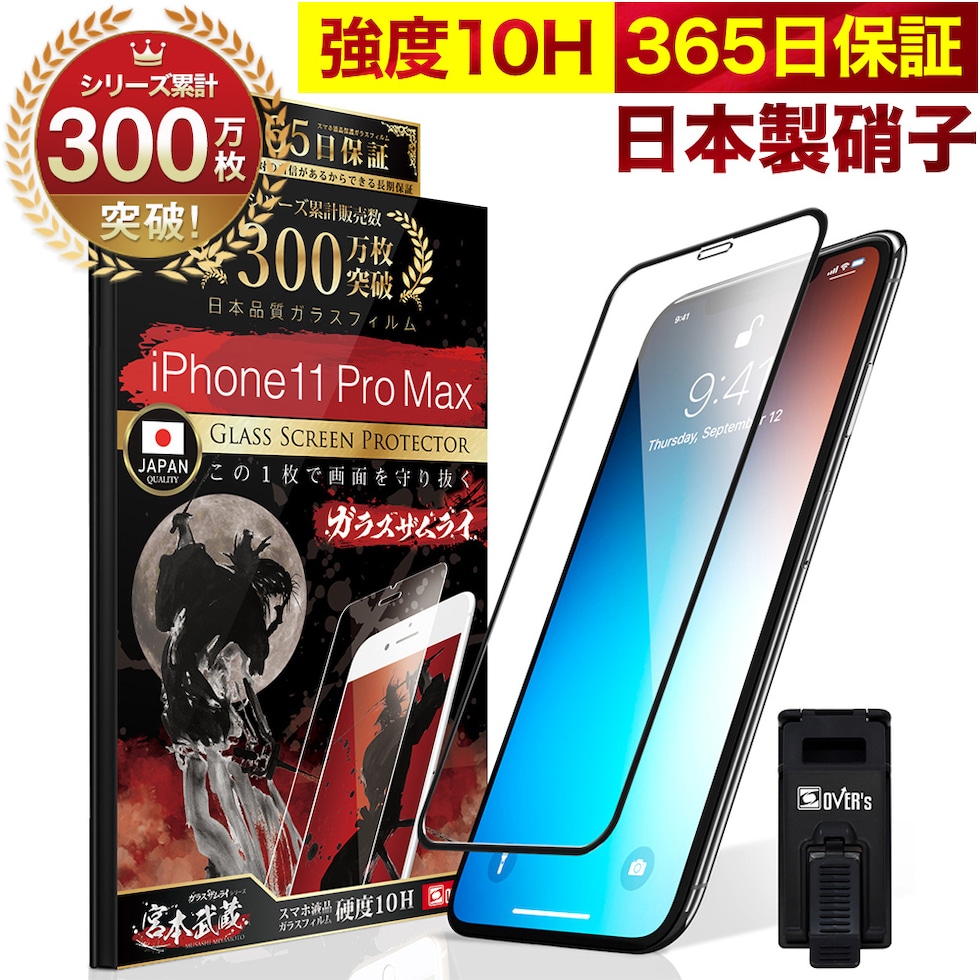 ガラスザムライ iPhone11 Pro Max ガラスフィルム 10H 国産ガラス素材 全面保護 強化ガラス 保護フィルム フィルム 240-3d