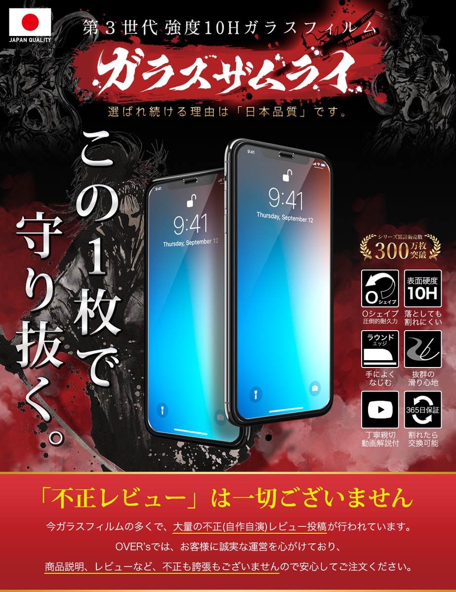「フィルムって貼るのが難しい… 」 という悩みがありました。「誰でも簡単に、ズラさず貼るには?」 を考え、誰でもキレイに貼れるように「らくらくクリップ」を開発しました。実用新案取得済み【 ● らくらくクリップ が付属! 】ガラスザムライと一緒にお届けします。