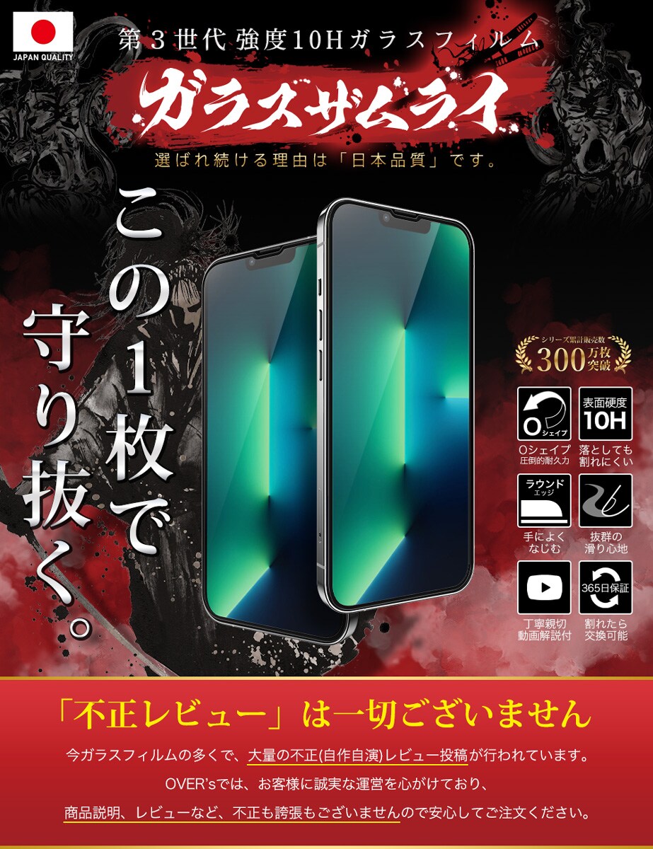 ガラスザムライ iPhone13 Pro Max ガラスフィルム 10H 国産ガラス素材 全面保護 強化ガラス 保護フィルム フィルム 332-3d