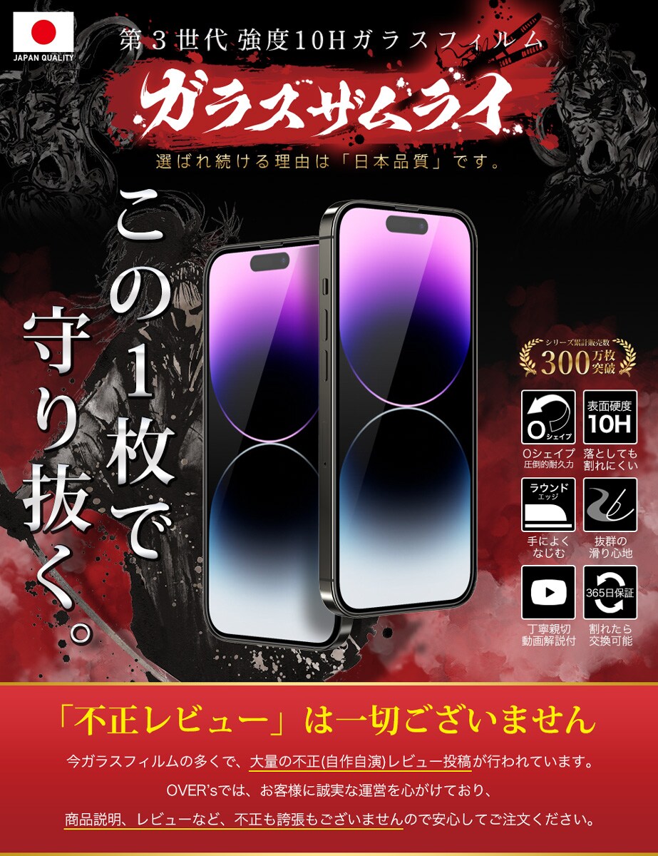 ガラスザムライ iPhone14 Pro ガラスフィルム 10H 国産ガラス素材 全面保護 強化ガラス 保護フィルム フィルム 362-3d