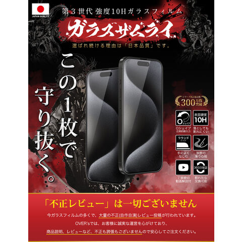 ガラスザムライ iPhone15 Pro ガラスフィルム 10H 国産ガラス素材 全面保護 強化ガラス 保護フィルム フィルム 387-3d