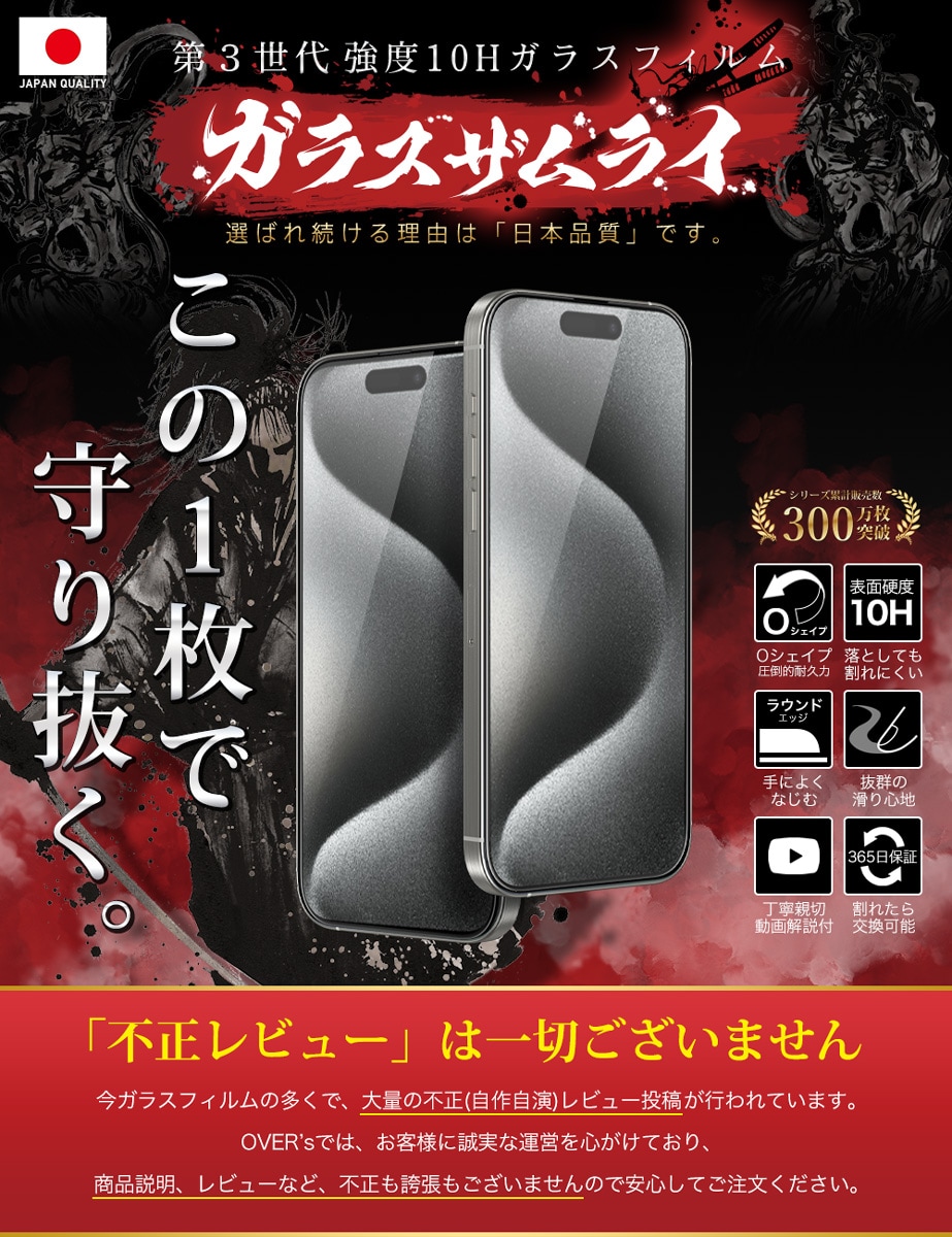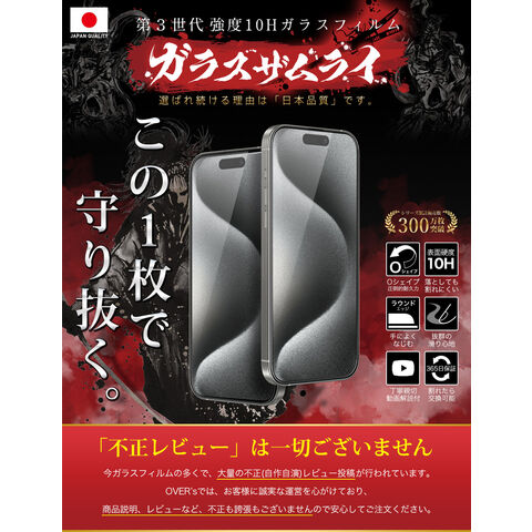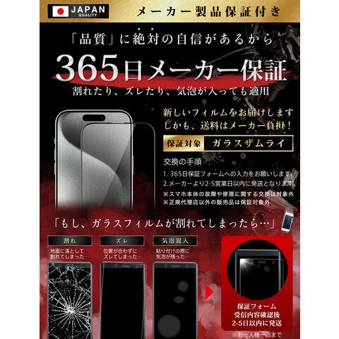 ガラスザムライ iPhone15 Pro Max ガラスフィルム 10H 国産ガラス素材 全面保護 強化ガラス 保護フィルム フィルム 389-3d
