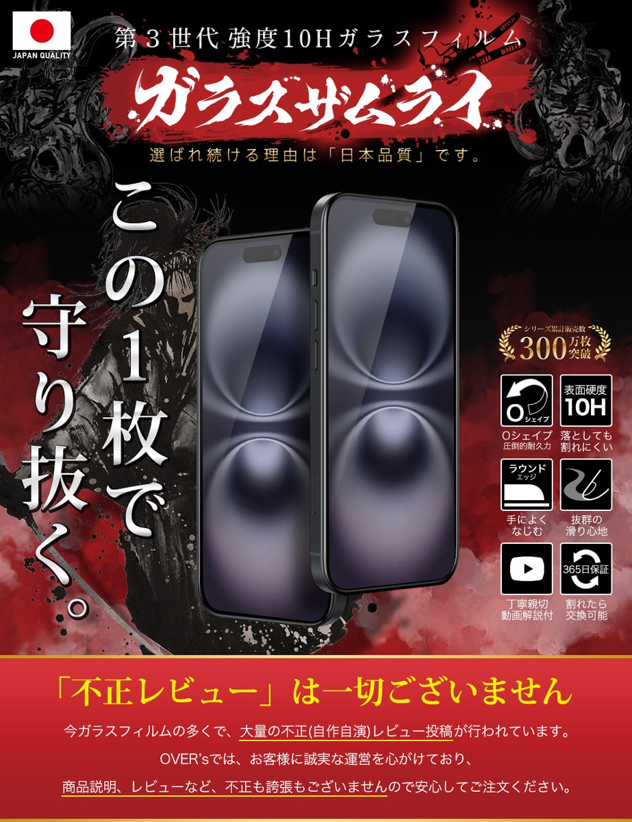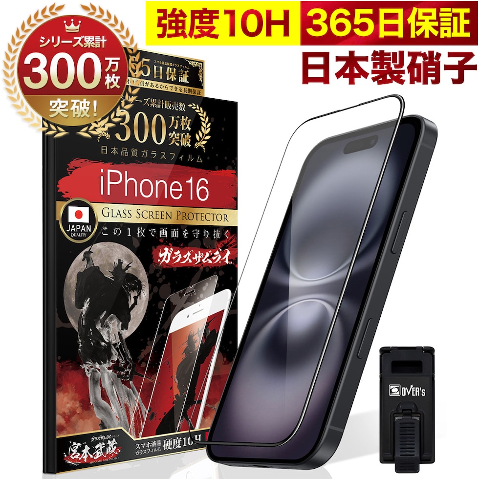 ガラスザムライ iPhone 16 ガラスフィルム 10H 国産ガラス素材 全面保護 強化ガラス 保護フィルム フィルム 410-3d