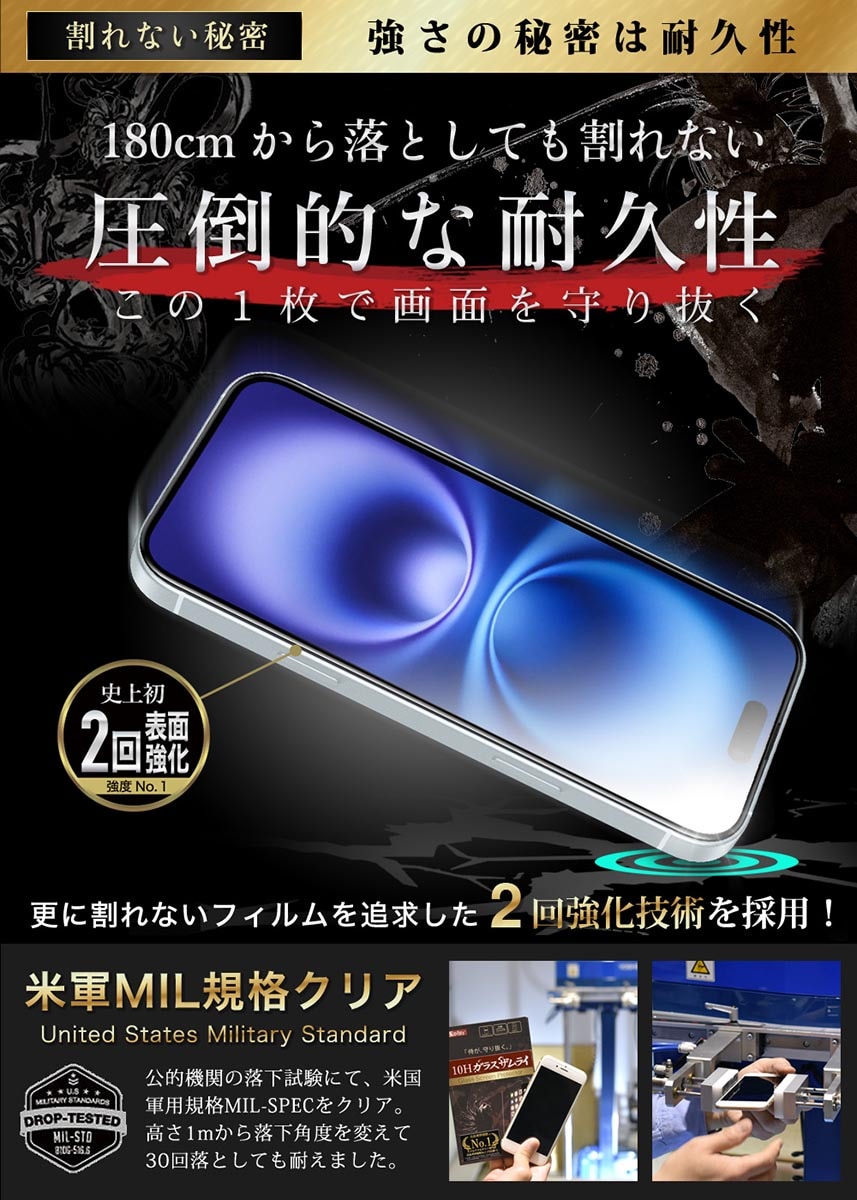● 従来品とは一線を画した “高品質ガラスフィルム” が 画面を守ります。