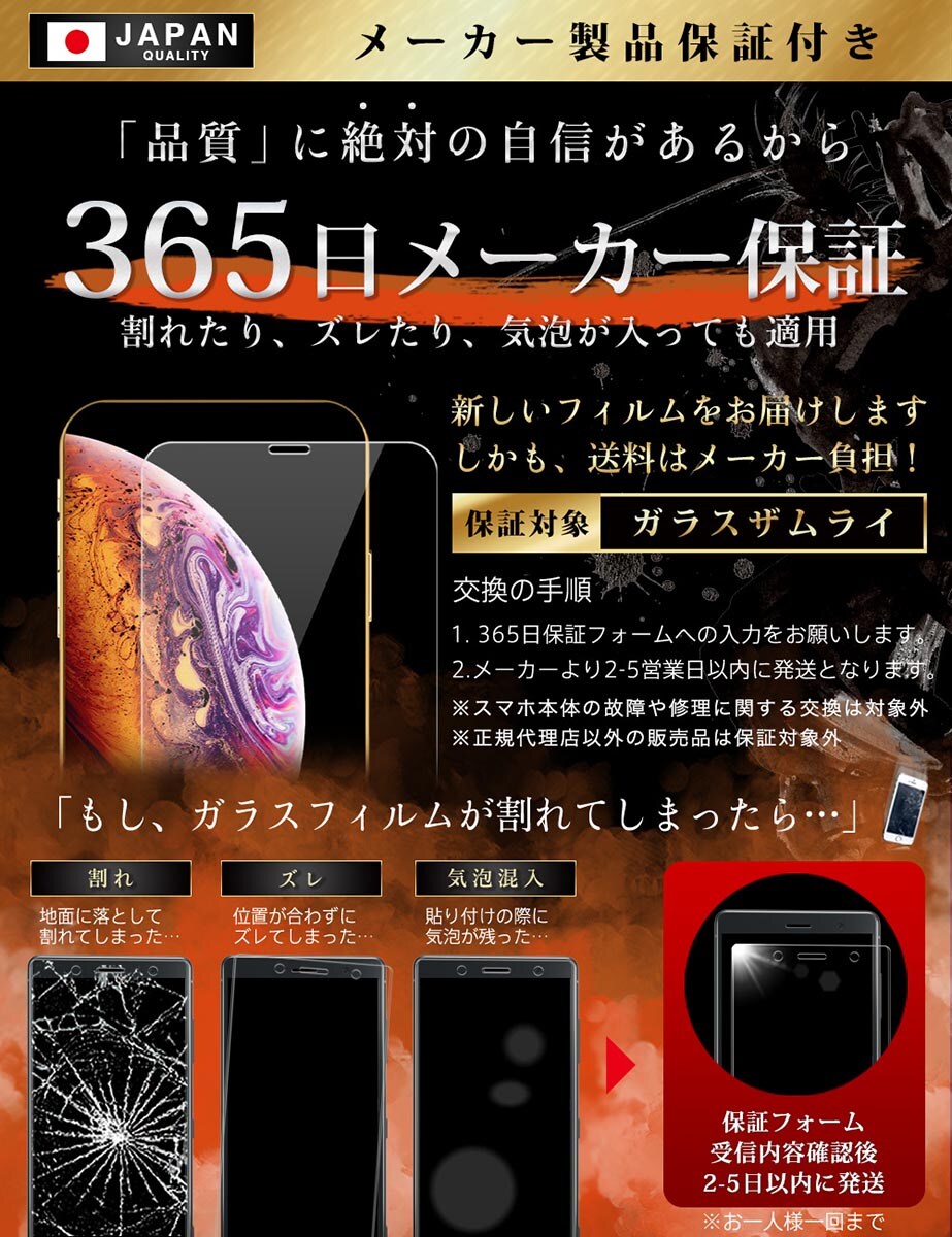 ガラスザムライは製造方法と素材を徹底して追求。 更に、270℃で1時間、410℃で5.5時間。+1時間の冷却をして、約6.5時間かけて ”割れないガラスフィルム” を実現しています。