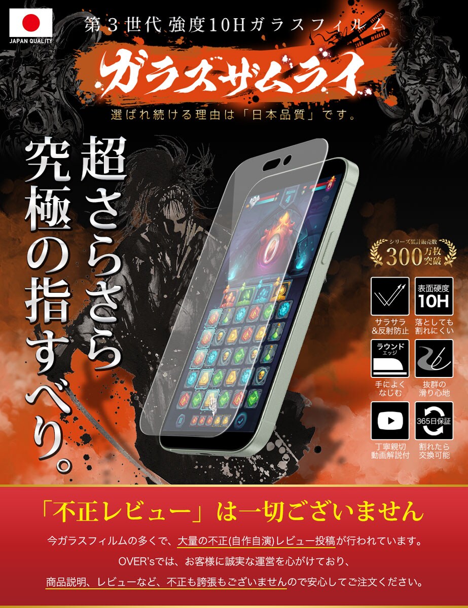 ガラスザムライ iPhone15 Plus ガラスフィルム アンチグレア 10H 国産ガラス素材 強化ガラス 保護フィルム フィルム 388-ang