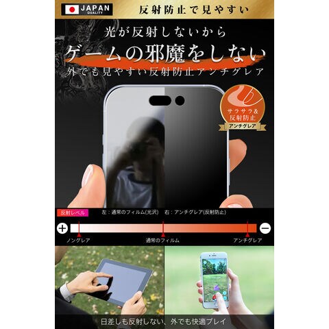 「パズドラで高得点ゲット。」思い通りに 指をすいすい動かせるアンチグレアフィルムを貼って高得点をゲット。【 ギラギラ感を抑える 低反射 】人影、蛍光灯や太陽光の反射など「ギラギラ感」をなくす低反射。反射低減フィルムのアンチグレアはあなたのゲームの時間を邪魔しません。