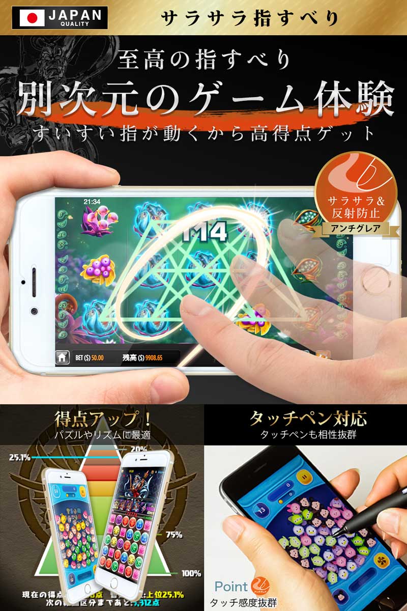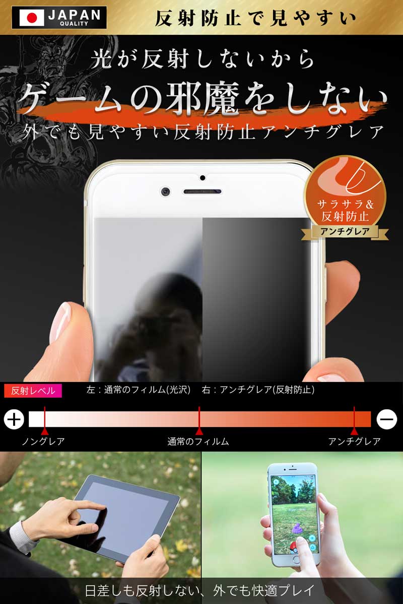 「パズドラで高得点ゲット。」思い通りに 指をすいすい動かせるアンチグレアフィルムを貼って高得点をゲット。【 ギラギラ感を抑える 低反射 】人影、蛍光灯や太陽光の反射など「ギラギラ感」をなくす低反射。反射低減フィルムのアンチグレアはあなたのゲームの時間を邪魔しません。
