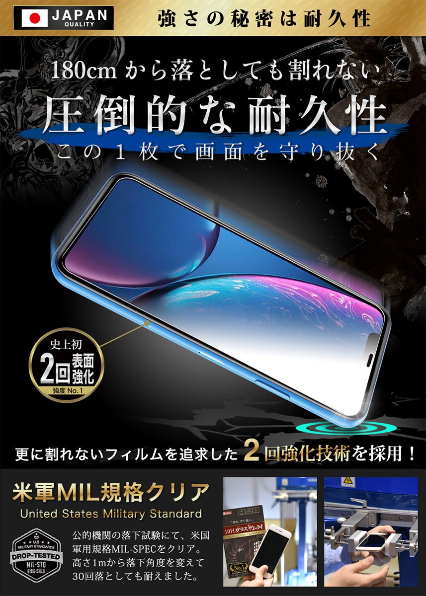 【 10H ガラスフィルム ~ 高さ1mから落ちても割れない 】