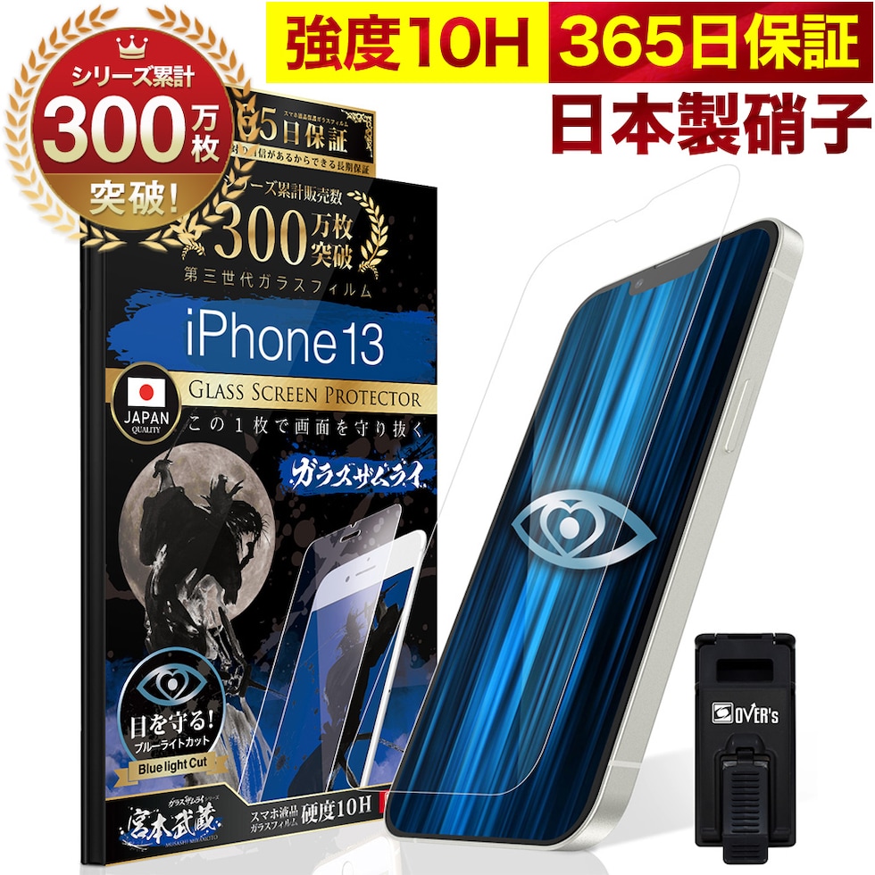 ガラスザムライ iPhone13 ガラスフィルム ブルーライトカット 10H 国産ガラス素材 強化ガラス 保護フィルム フィルム 330-blue