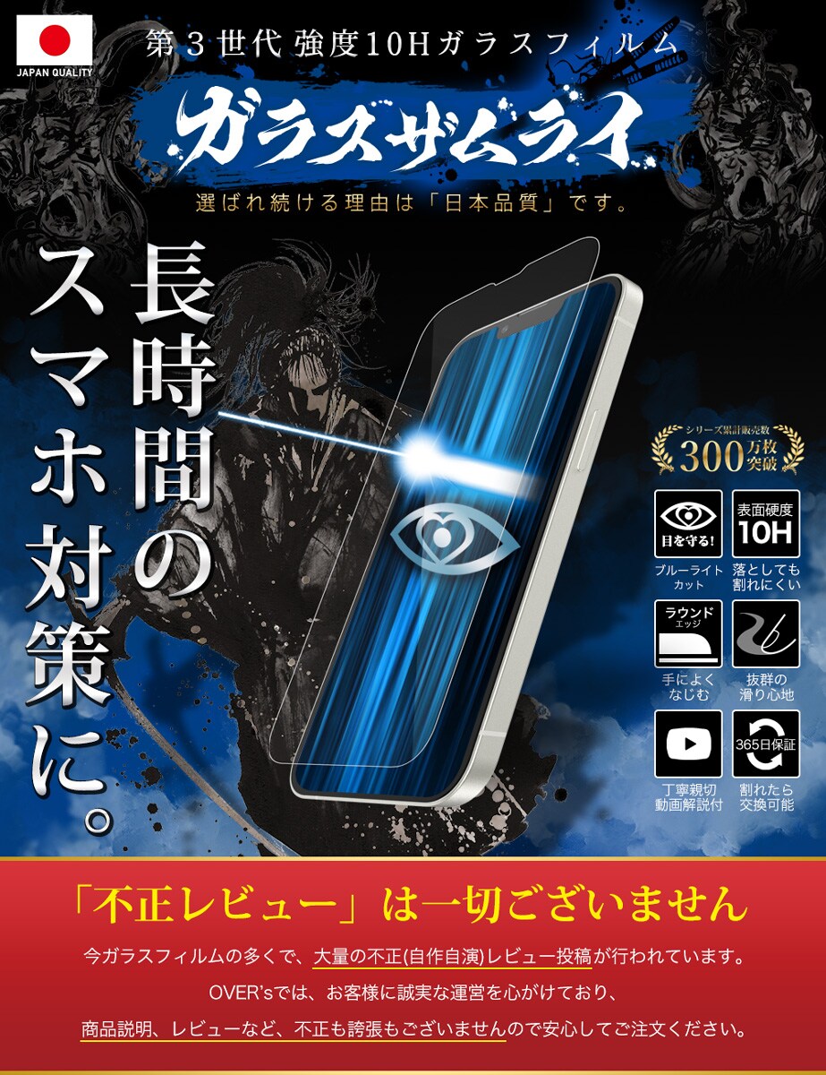 移動中の電車で、寝る前の暗闇で、ゲームのやりすぎで、ブルーライトを浴び続けると「目の痛み」「肩こり」「頭痛」を引き起こし、体全体に悪影響を与えます。 今日からできる "ブルーライト対策" を、ガラスザムライで。