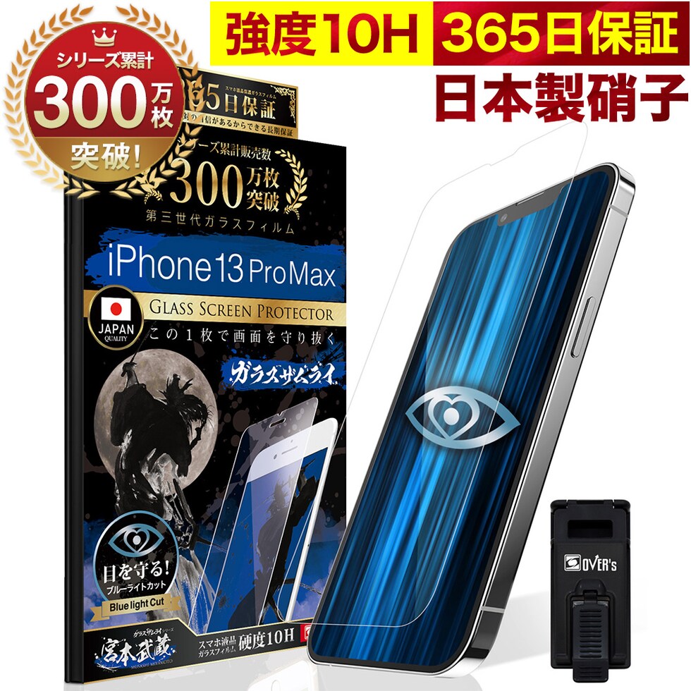 商品名:iPhone 13 Pro Max ガラスフィルム 保護フィルム ブルーライトカット 10H ガラス ガラスザムライ らくらくクリップ付き アイフォン アイホン iPhone 13Pro Max フィルム