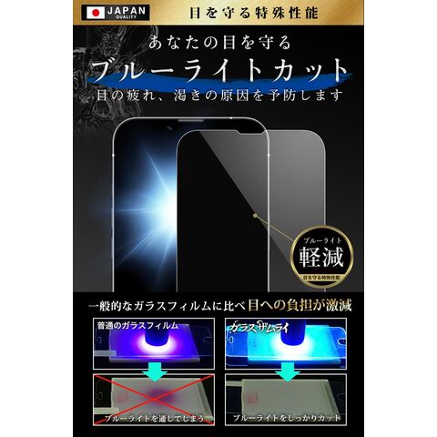 ガラスザムライ iPhone13 Pro Max ガラスフィルム ブルーライトカット 10H 国産ガラス素材 強化ガラス 保護フィルム フィルム 332-blue