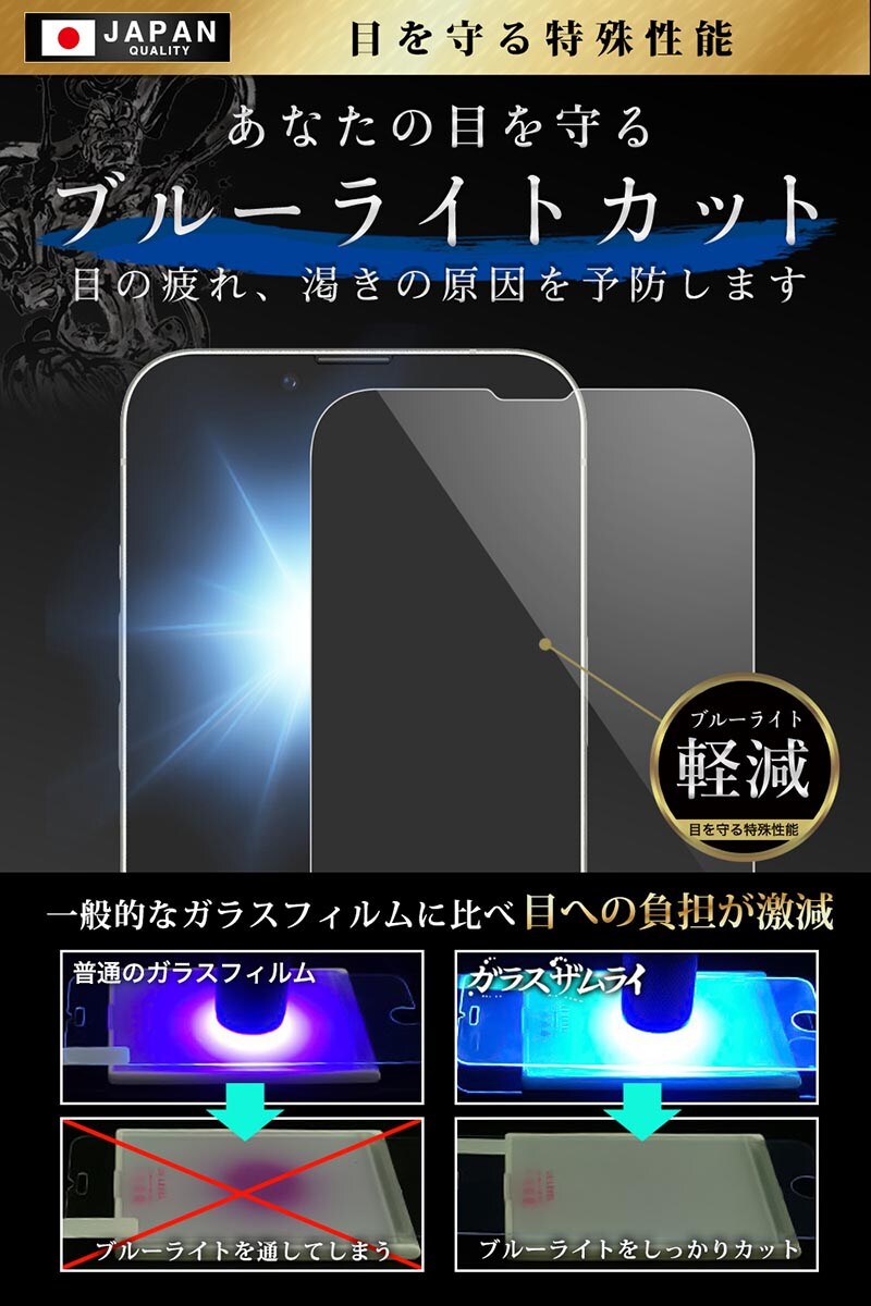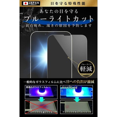 ガラスザムライ iPhone14 ガラスフィルム ブルーライトカット 10H 国産ガラス素材 強化ガラス 保護フィルム フィルム 360-blue