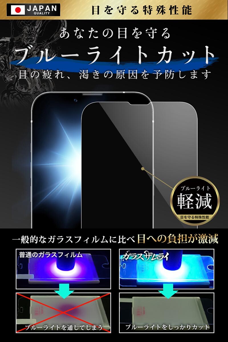 ガラスザムライ iPhone14 Plus ガラスフィルム ブルーライトカット 10H 国産ガラス素材 強化ガラス 保護フィルム フィルム 361-blue