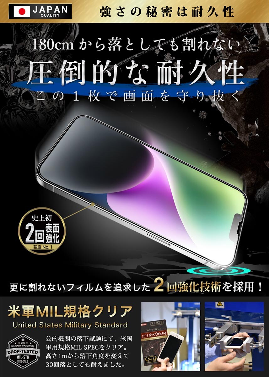 【 10H ガラスフィルム ~ 高さ1mから落ちても割れない 】