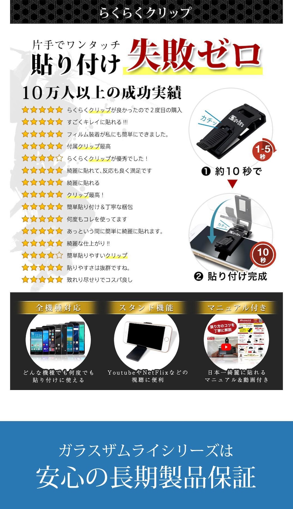 ● らくらくクリップ で失敗しないフィルム貼り