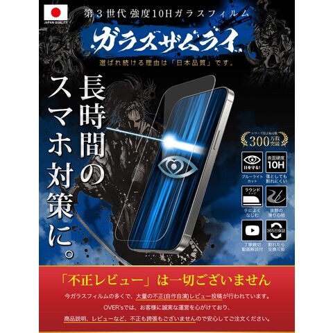 ガラスザムライ iPhone15 Pro Max ガラスフィルム ブルーライトカット 10H 国産ガラス素材 強化ガラス 保護フィルム フィルム 389-blue