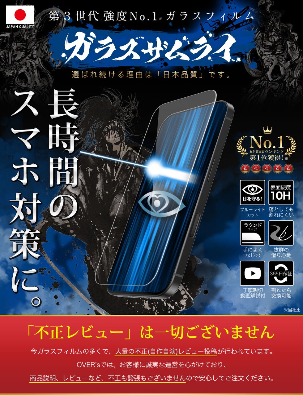 移動中の電車で、寝る前の暗闇で、ゲームのやりすぎで、ブルーライトを浴び続けると「目の痛み」「肩こり」「頭痛」を引き起こし、体全体に悪影響を与えます。 今日からできる "ブルーライト対策" を、ガラスザムライで。