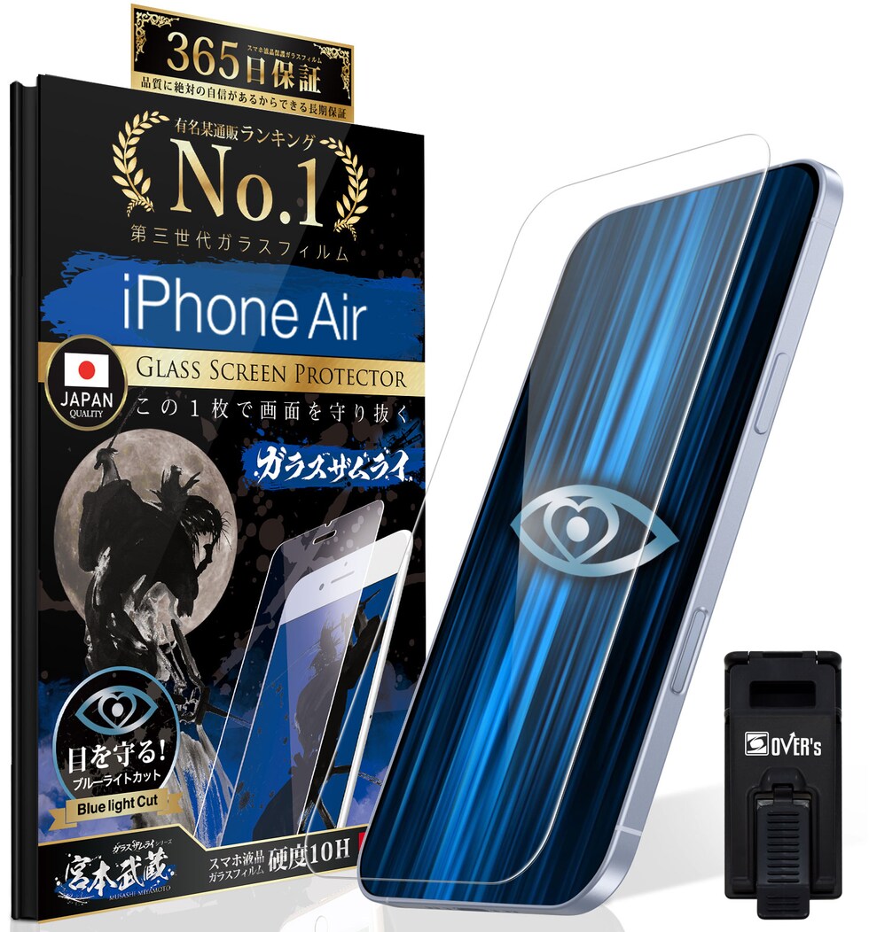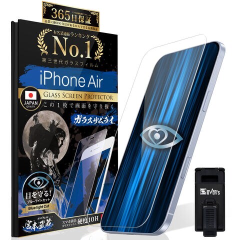 ガラスザムライ iPhone Air ガラスフィルム ブルーライトカット 10H 国産ガラス素材 強化ガラス 保護フィルム フィルム 437-blue