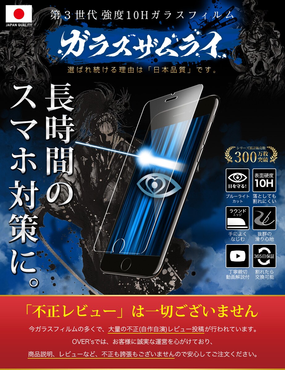 ガラスザムライ iPhone8 ガラスフィルム ブルーライトカット 10H 国産ガラス素材 強化ガラス 保護フィルム フィルム 54-blue