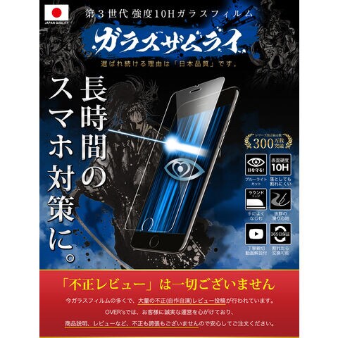 ガラスザムライ iPhone8 Plus ガラスフィルム ブルーライトカット 10H 国産ガラス素材 強化ガラス 保護フィルム フィルム 55-blue