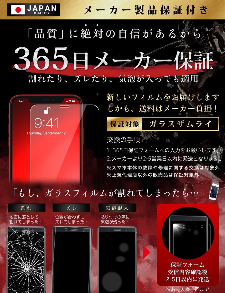 「フィルムって貼るのが難しい… 」 という悩みがありました。「誰でも簡単に、ズラさず貼るには?」 を考え、誰でもキレイに貼れるように「らくらくクリップ」を開発しました。実用新案取得済み【 ● らくらくクリップ が付属! 】ガラスザムライと一緒にお届けします。
