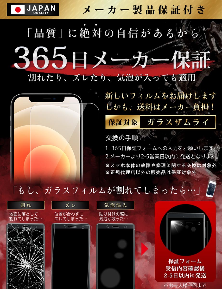 「フィルムって貼るのが難しい… 」 という悩みがありました。「誰でも簡単に、ズラさず貼るには?」 を考え、誰でもキレイに貼れるように「らくらくクリップ」を開発しました。実用新案取得済み【 ● らくらくクリップ が付属! 】ガラスザムライと一緒にお届けします。