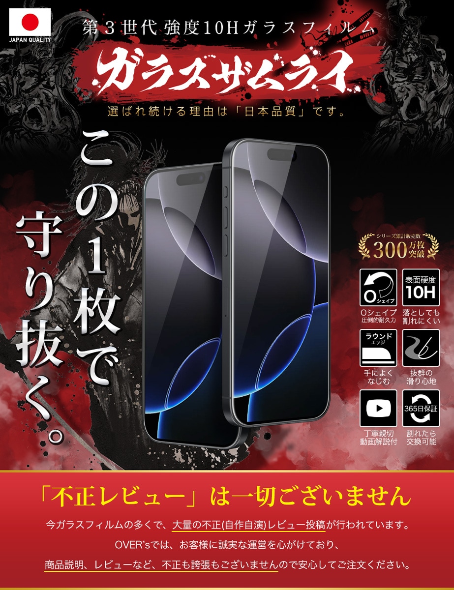 ガラスザムライ iPhone16 Pro ガラスフィルム 10H 国産ガラス素材 強化ガラス 保護フィルム フィルム 412-k