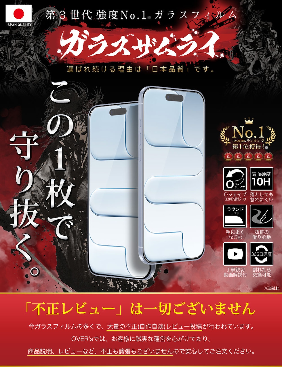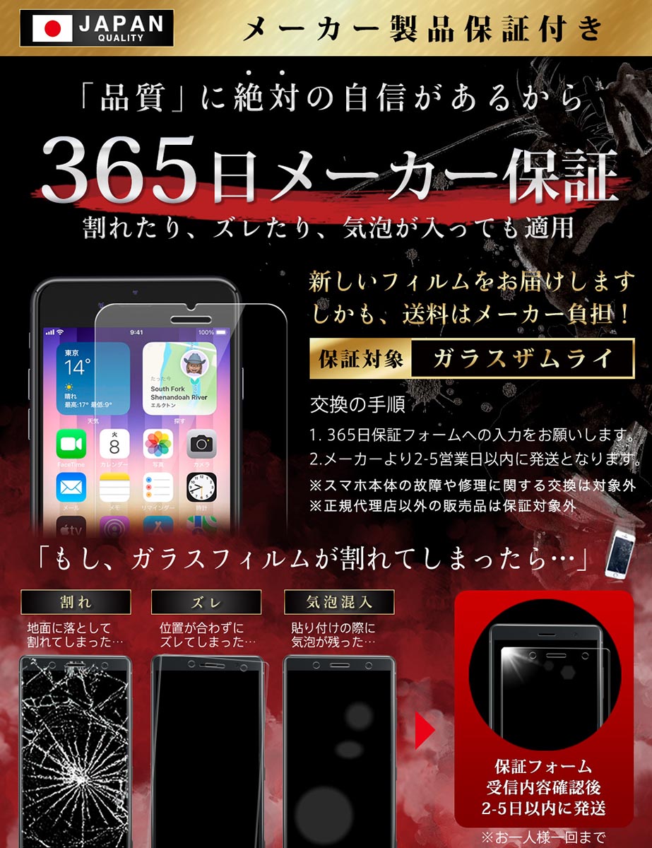 「フィルムって貼るのが難しい… 」 という悩みがありました。「誰でも簡単に、ズラさず貼るには?」 を考え、誰でもキレイに貼れるように「らくらくクリップ」を開発しました。実用新案取得済み【 ● らくらくクリップ が付属! 】ガラスザムライと一緒にお届けします。