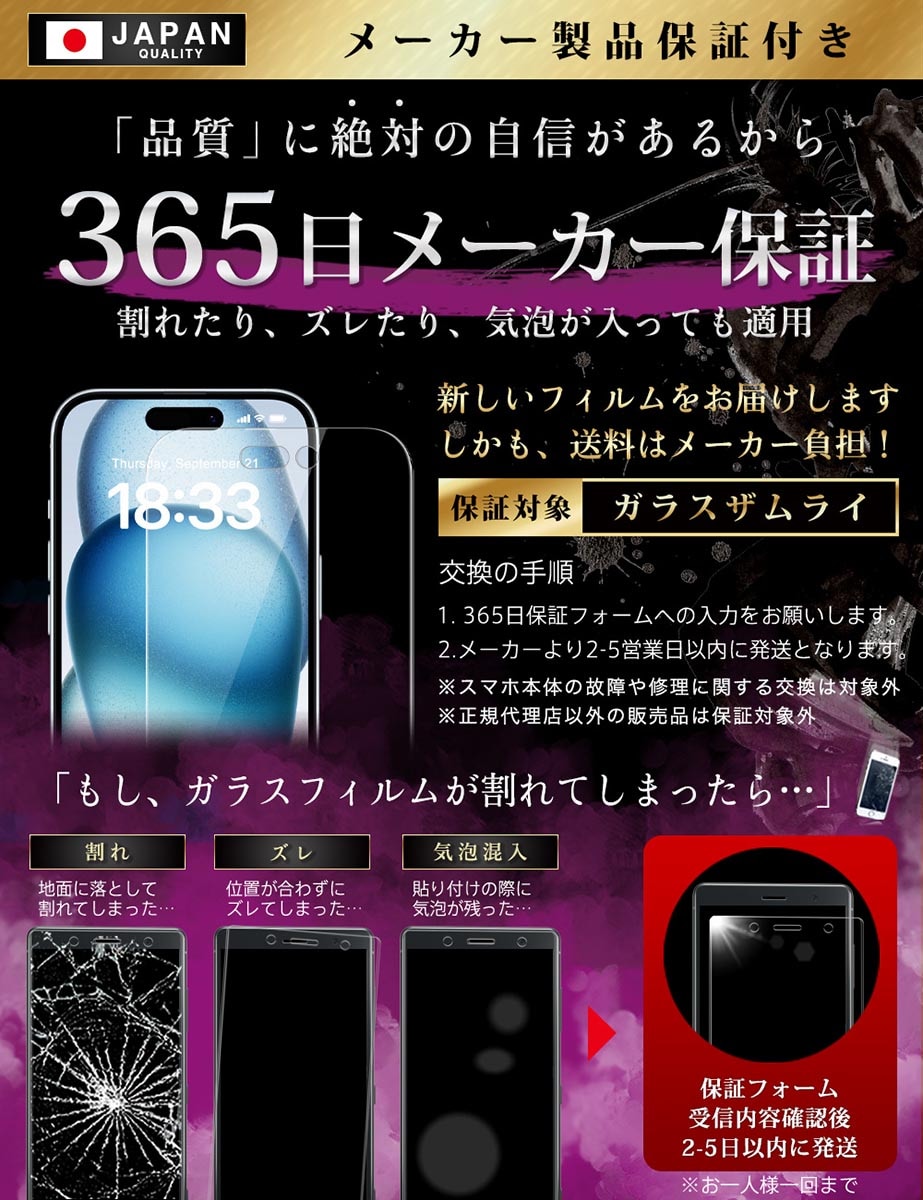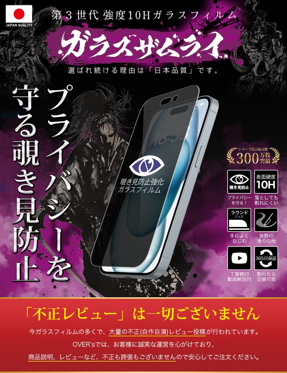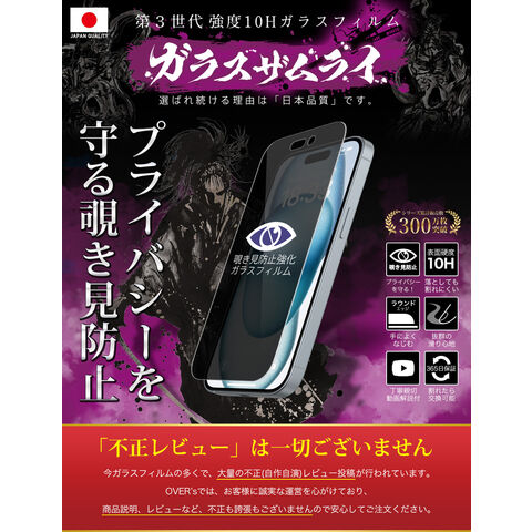 ガラスザムライ iPhone15 ガラスフィルム 覗き見防止 10H 国産ガラス素材 強化ガラス 保護フィルム フィルム 386-nzb