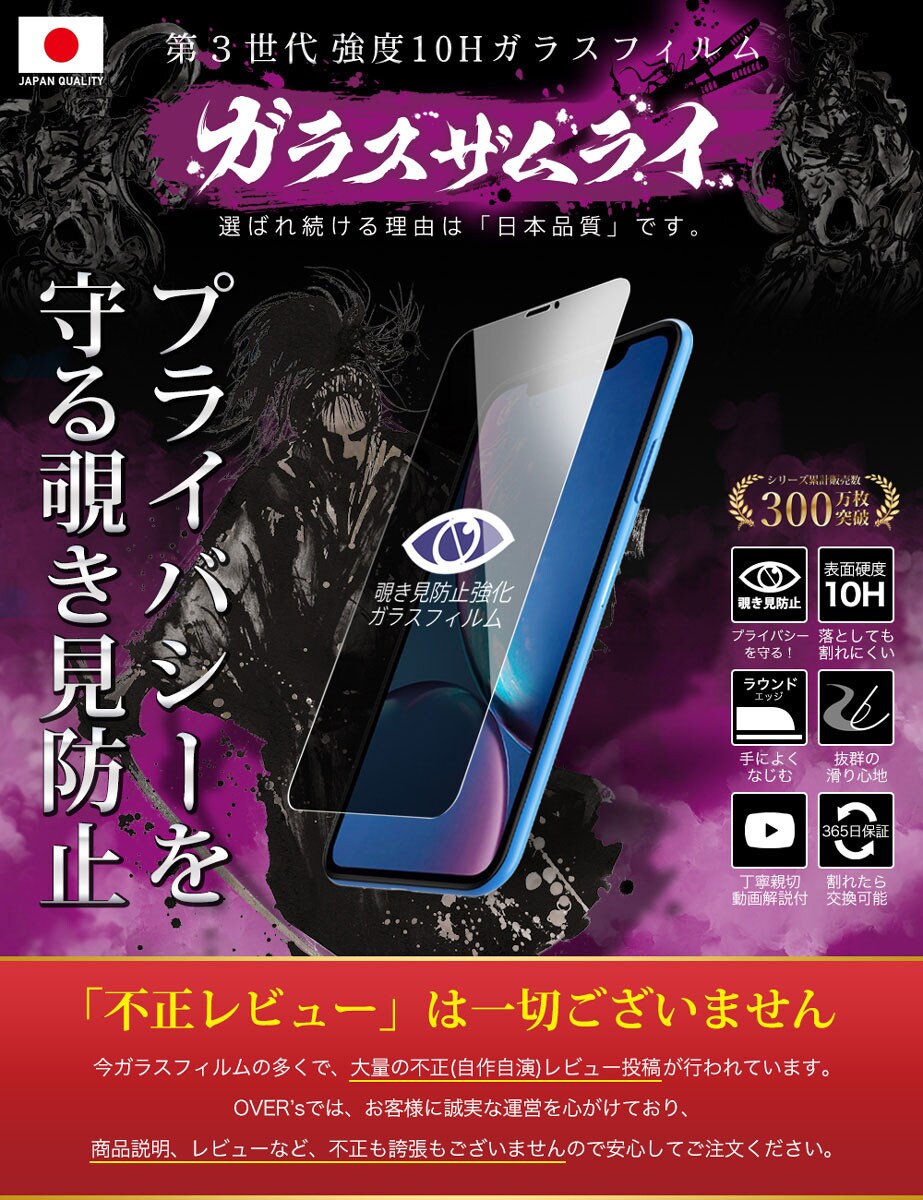 ガラスザムライ iPhoneXR ガラスフィルム 覗き見防止 10H 国産ガラス素材 強化ガラス 保護フィルム フィルム 196-nzb