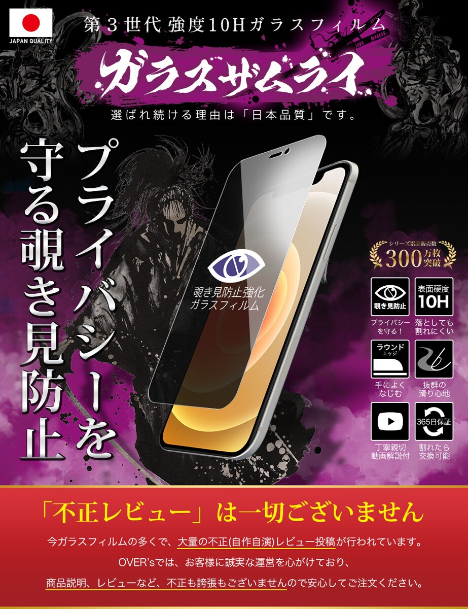 ガラスザムライ iPhone12 ガラスフィルム 覗き見防止 10H 国産ガラス素材 強化ガラス 保護フィルム フィルム 282-nzb