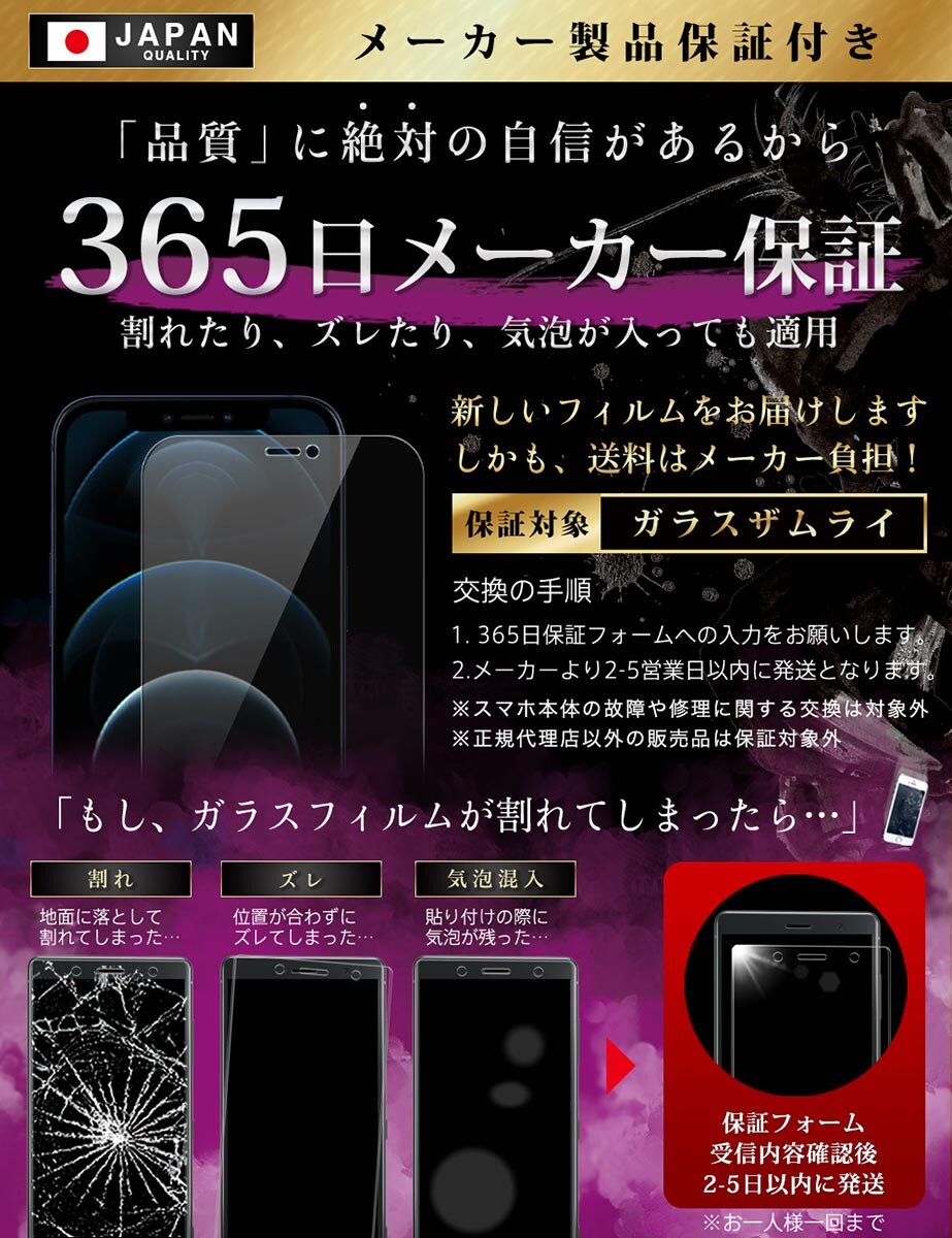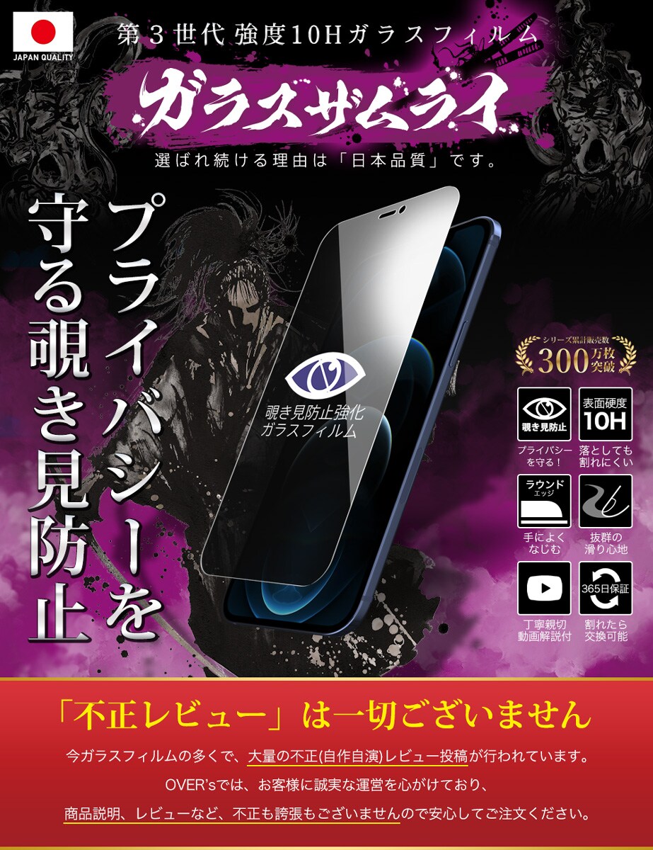 ガラスザムライ iPhone12 Pro ガラスフィルム 覗き見防止 10H 国産ガラス素材 強化ガラス 保護フィルム フィルム 283-nzb