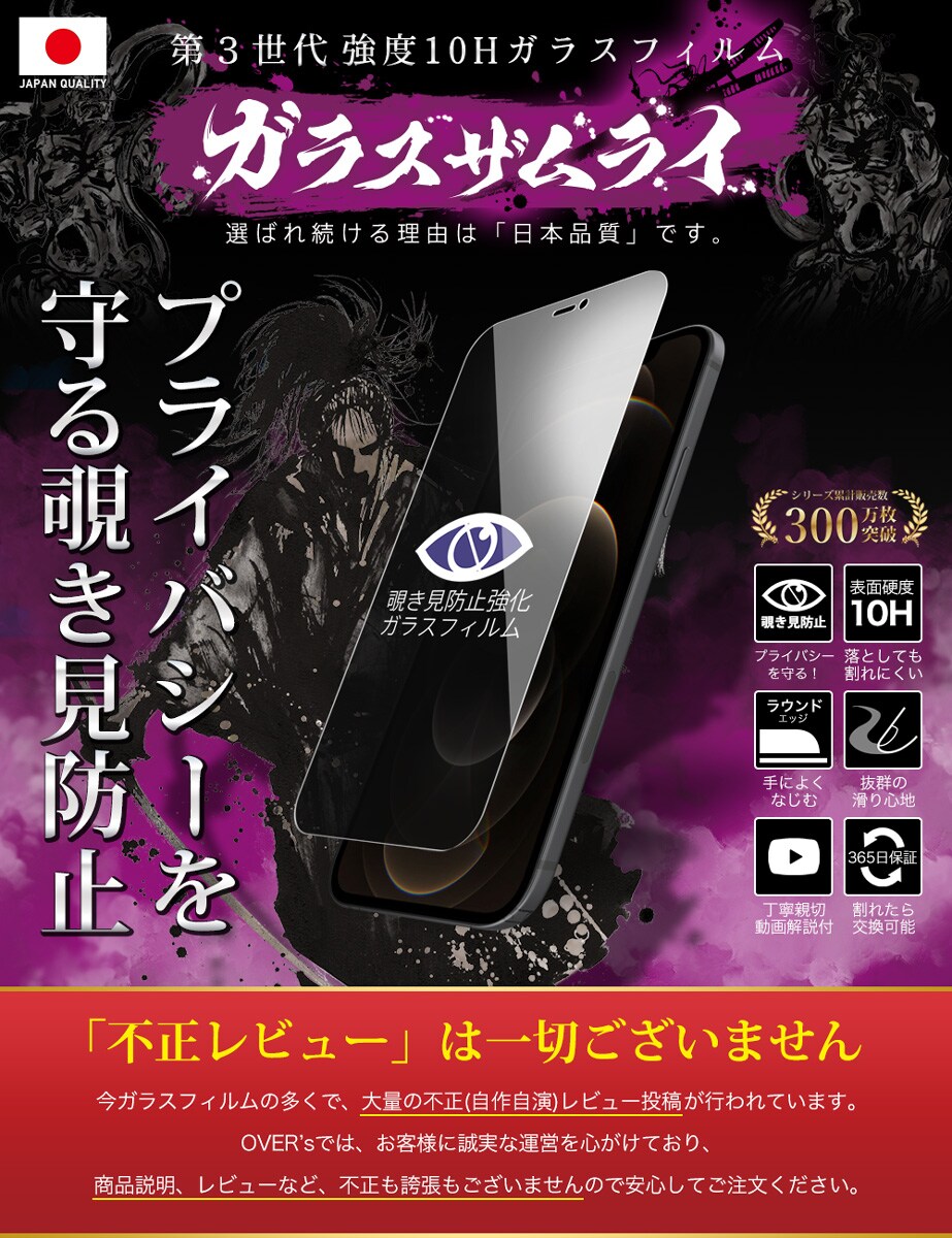 ガラスザムライ iPhone12 Pro Max ガラスフィルム 覗き見防止 10H 国産ガラス素材 強化ガラス 保護フィルム フィルム 284-nzb