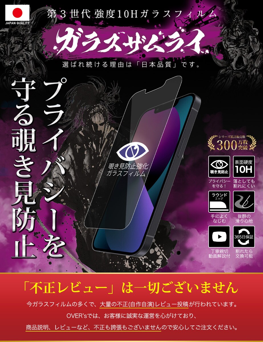 ガラスザムライ iPhone13 mini ガラスフィルム 覗き見防止 10H 国産ガラス素材 強化ガラス 保護フィルム フィルム 329-nzb