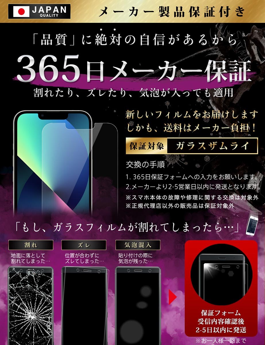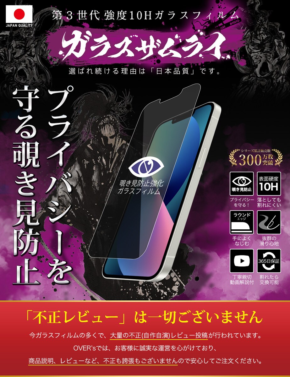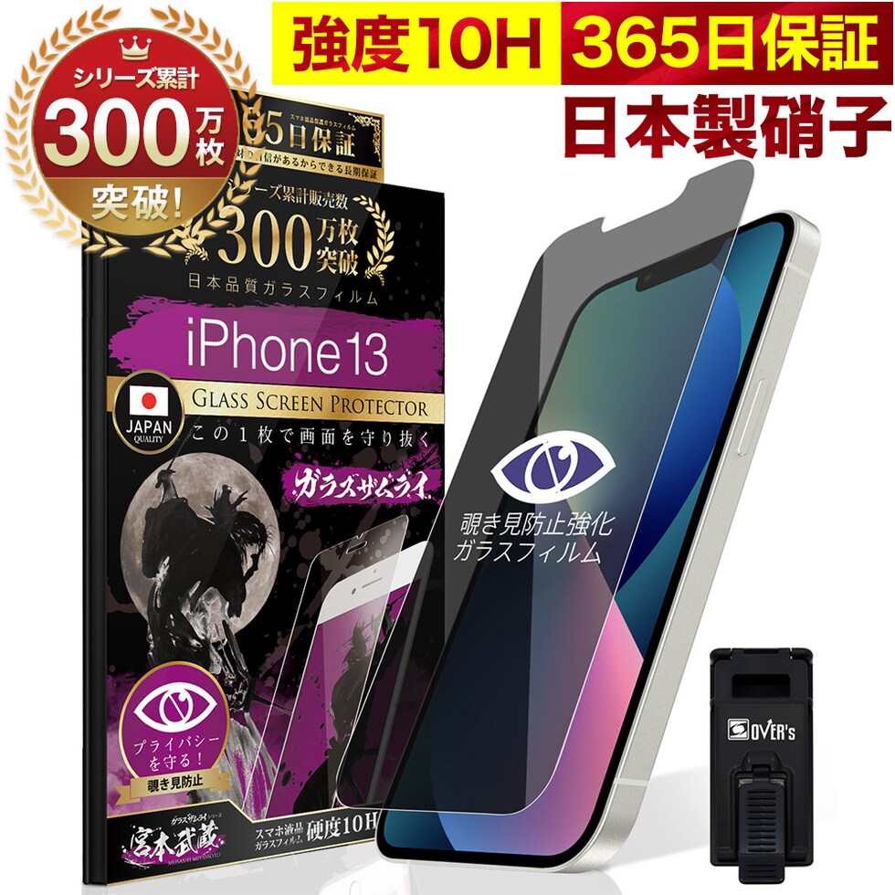 ガラスザムライ iPhone13 ガラスフィルム 覗き見防止 10H 国産ガラス素材 強化ガラス 保護フィルム フィルム 330-nzb