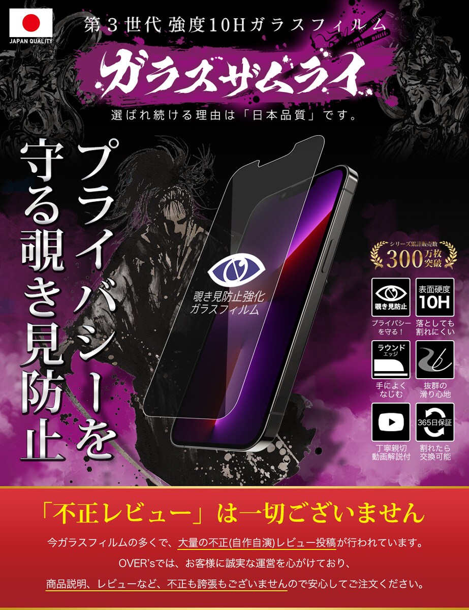 ガラスザムライ iPhone13 Pro ガラスフィルム 覗き見防止 10H 国産ガラス素材 強化ガラス 保護フィルム フィルム 331-nzb