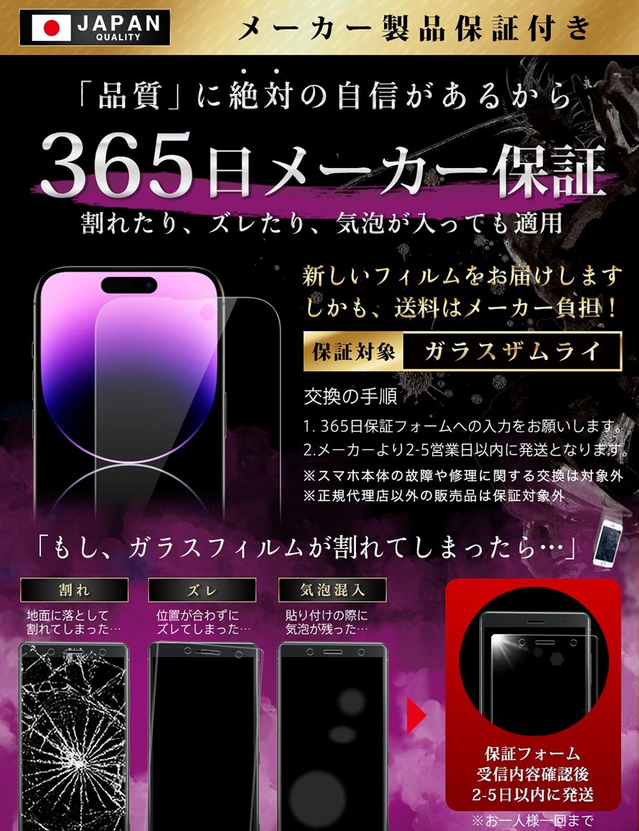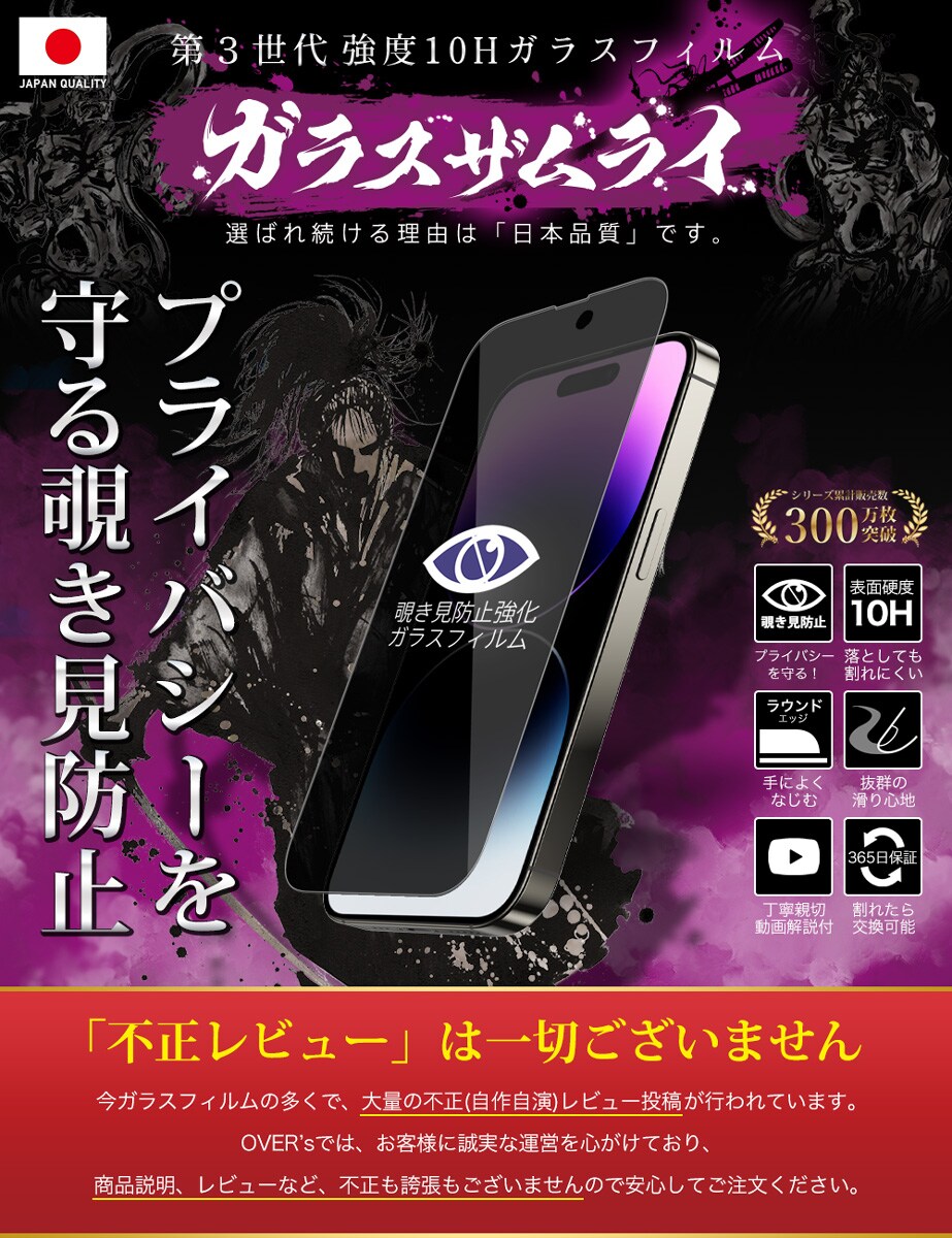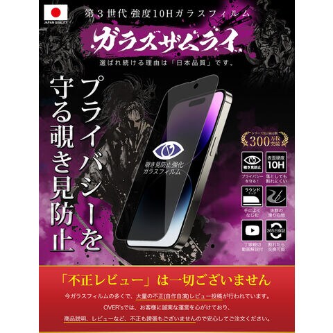 ガラスザムライ iPhone14 Pro ガラスフィルム 覗き見防止 10H 国産ガラス素材 強化ガラス 保護フィルム フィルム 362-nzb