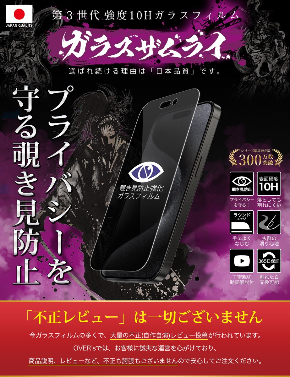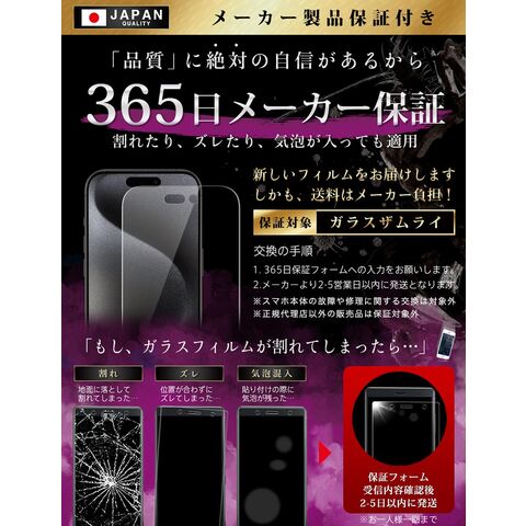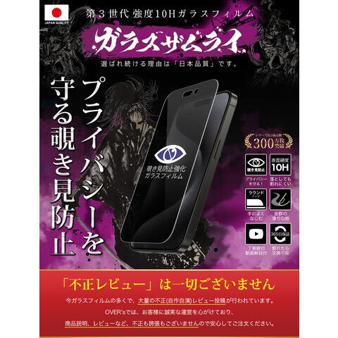 ガラスザムライ iPhone15 Pro ガラスフィルム 覗き見防止 10H 国産ガラス素材 強化ガラス 保護フィルム フィルム 387-nzb