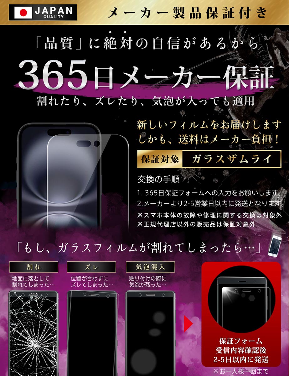 ガラスザムライ iPhone 16 ガラスフィルム 覗き見防止 10H 国産ガラス素材 強化ガラス 保護フィルム フィルム 410-nzb