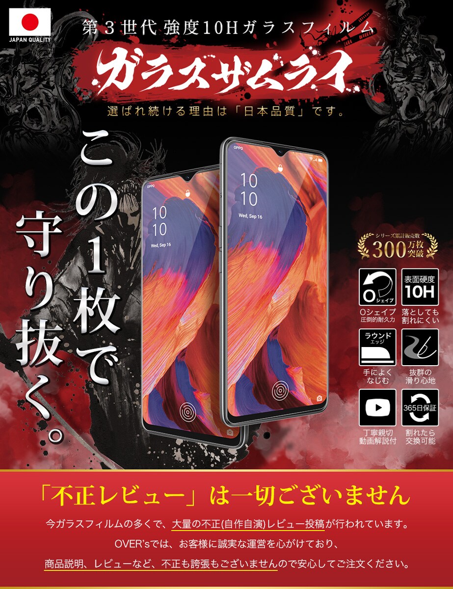 ガラスザムライ OPPO A73 ガラスフィルム 10H 国産ガラス素材 強化ガラス 保護フィルム フィルム 301-k
