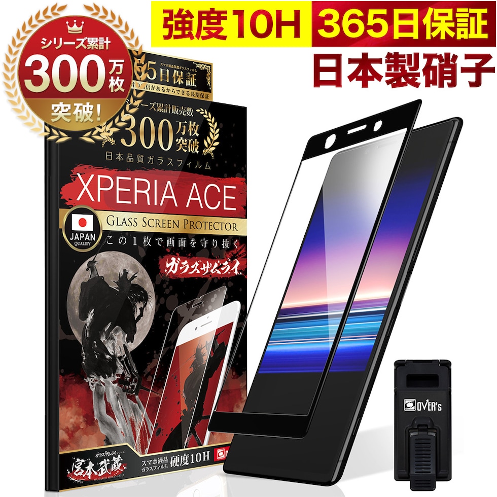 ガラスザムライ Xperia Ace ガラスフィルム 10H 国産ガラス素材 全面保護 強化ガラス 保護フィルム フィルム 219-3d