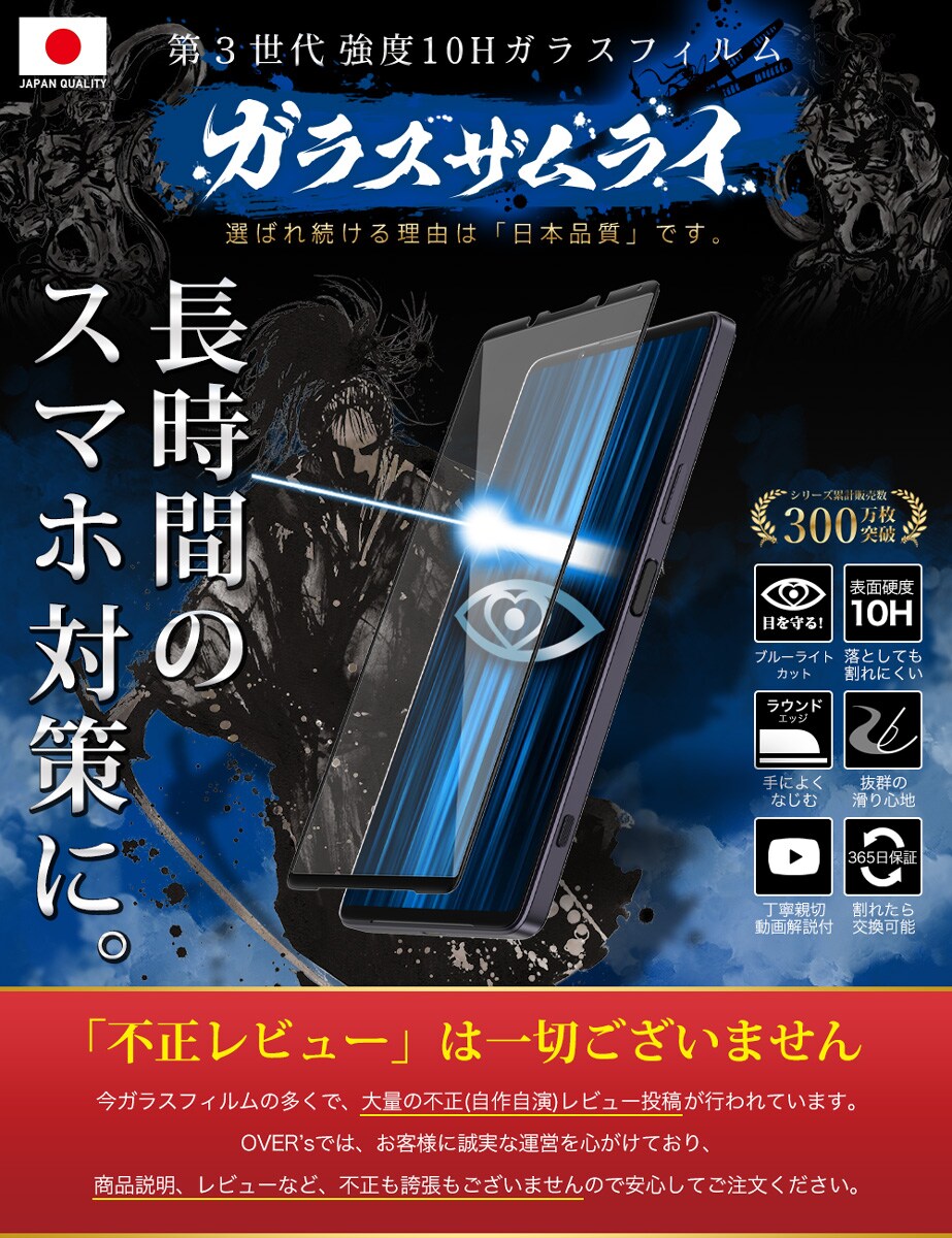 移動中の電車で、寝る前の暗闇で、ゲームのやりすぎで、ブルーライトを浴び続けると「目の痛み」「肩こり」「頭痛」を引き起こし、体全体に悪影響を与えます。 今日からできる "ブルーライト対策" を、ガラスザムライで。