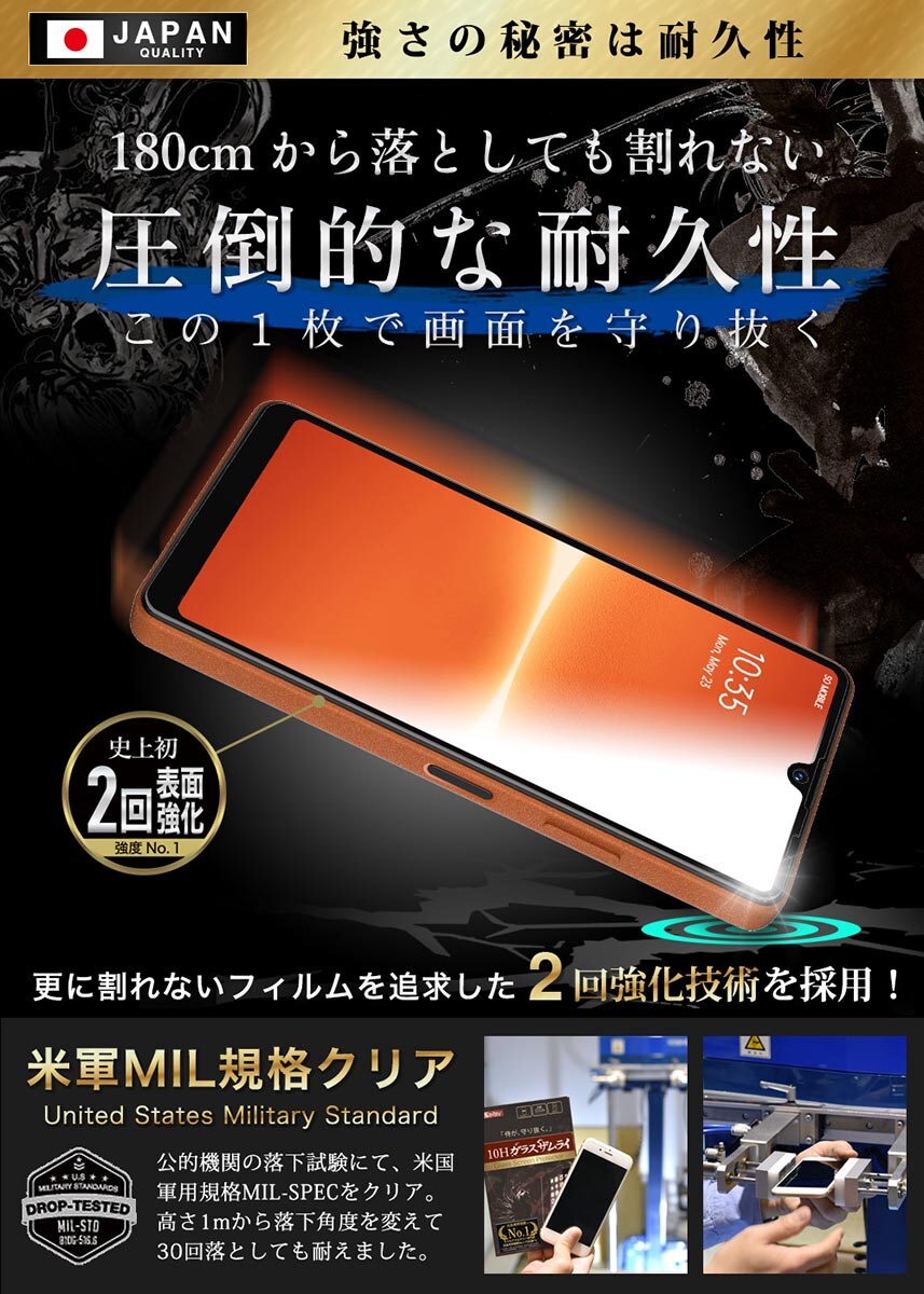 【 10H ガラスフィルム ~ 高さ1mから落ちても割れない 】