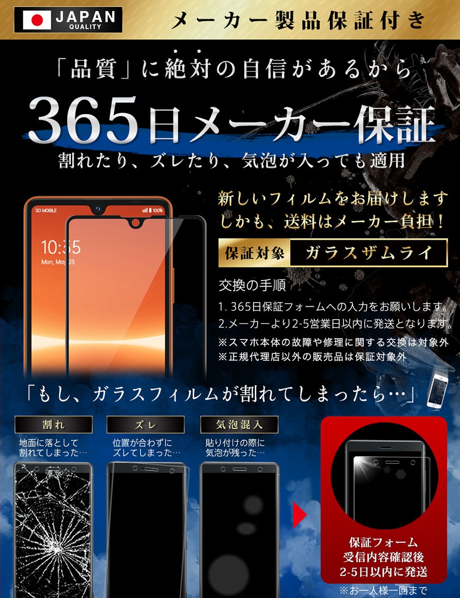 商品名:Xperia Ace III ガラスフィルム 保護フィルム ブルーライトカット 10H ガラス ガラスザムライ らくらくクリップ付き フィルム