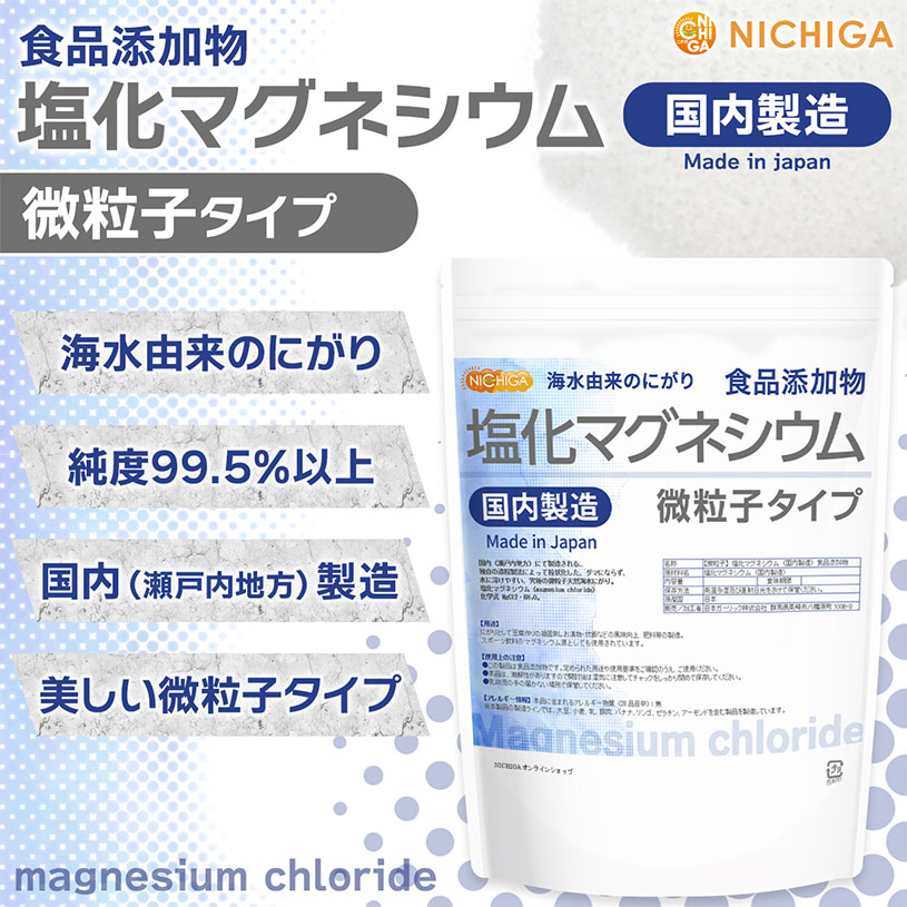 【微粒子】 塩化マグネシウム(国内製造) 1kg 【送料無料】【メール便で郵便ポストにお届け】【代引不可】【時間指定不可】 究極の微粒子 天然海水にがり 食品添加物 [01] NICHIGA(ニチガ)